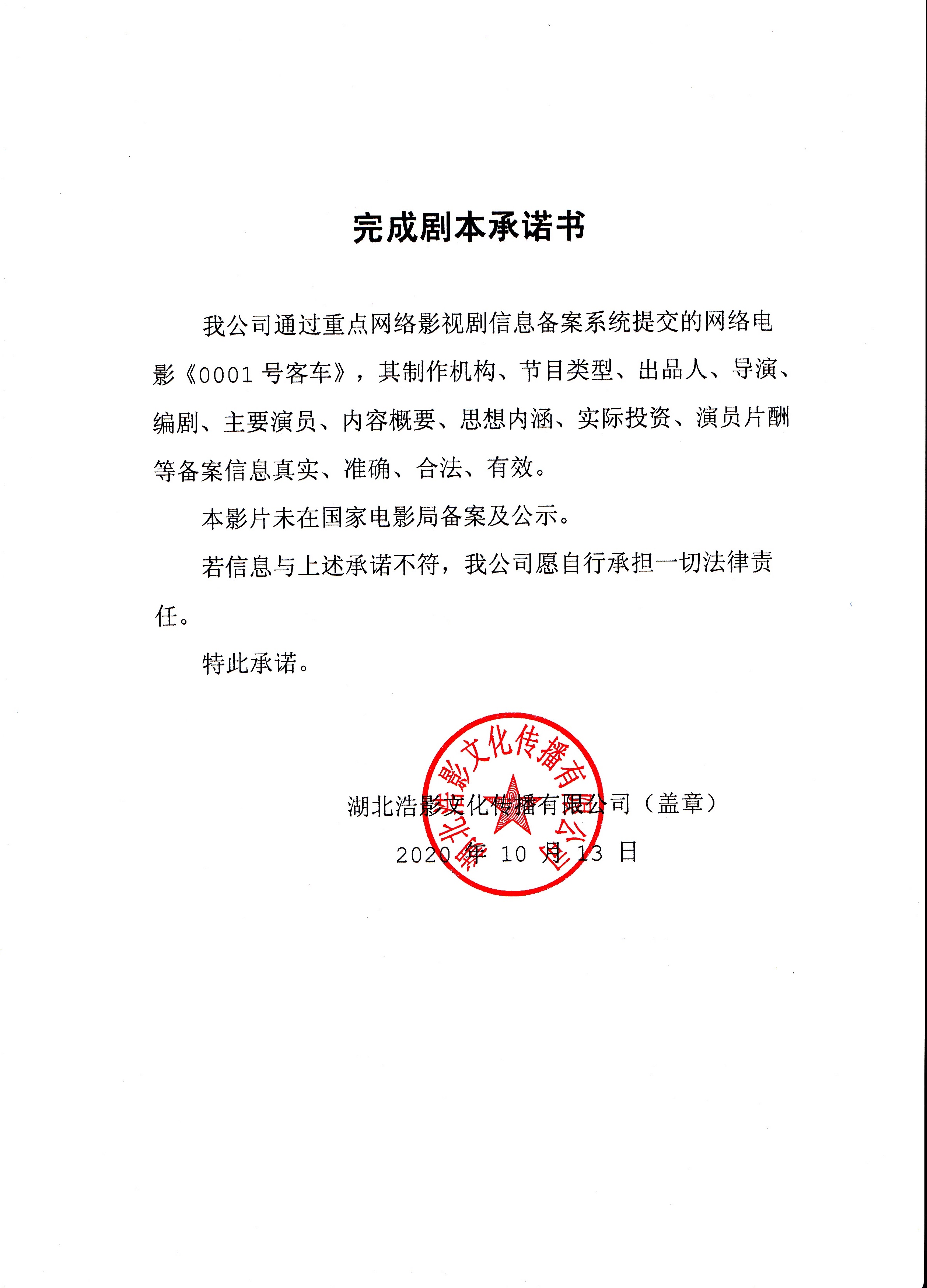 網(wǎng)絡(luò )大電影《0001號客車(chē)》申報開(kāi)機籌備中